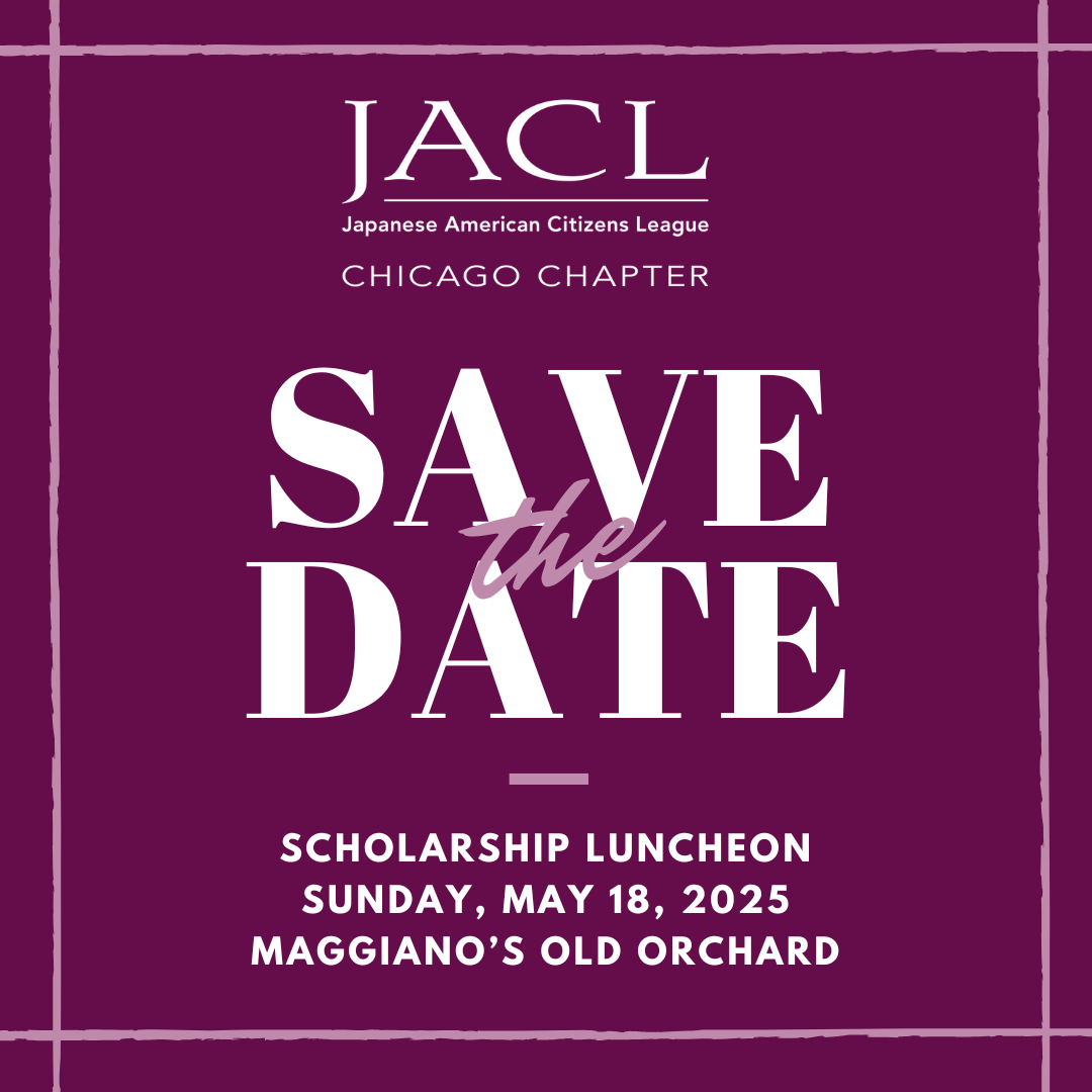 |  | Sunday, May 18, 2025 12 – 2 PM Maggiano’s – Old Orchard Barolo Room RSVP: https://bit.ly/JACLscholarshipluncheon2025 JACL Chicago’s scholarship program recognizes the accomplishments of students who have demonstrated a commitment to JACL’s mission of advancing social justice and promoting the legacy and cultural heritage of the Japanese American community. Our annual JACL Chicago Scholarship Luncheon is an intergenerational community event that celebrates the accomplishments of our young scholarship winners, allows scholarship donors to honor the memory of their loved ones through their awards, and welcomes our new scholarship awardees to the JACL Chicago community. Please join us to celebrate the achievements of our 2025 scholarship winners: - Sanjay Ganesh, University of Illinois, Chicago