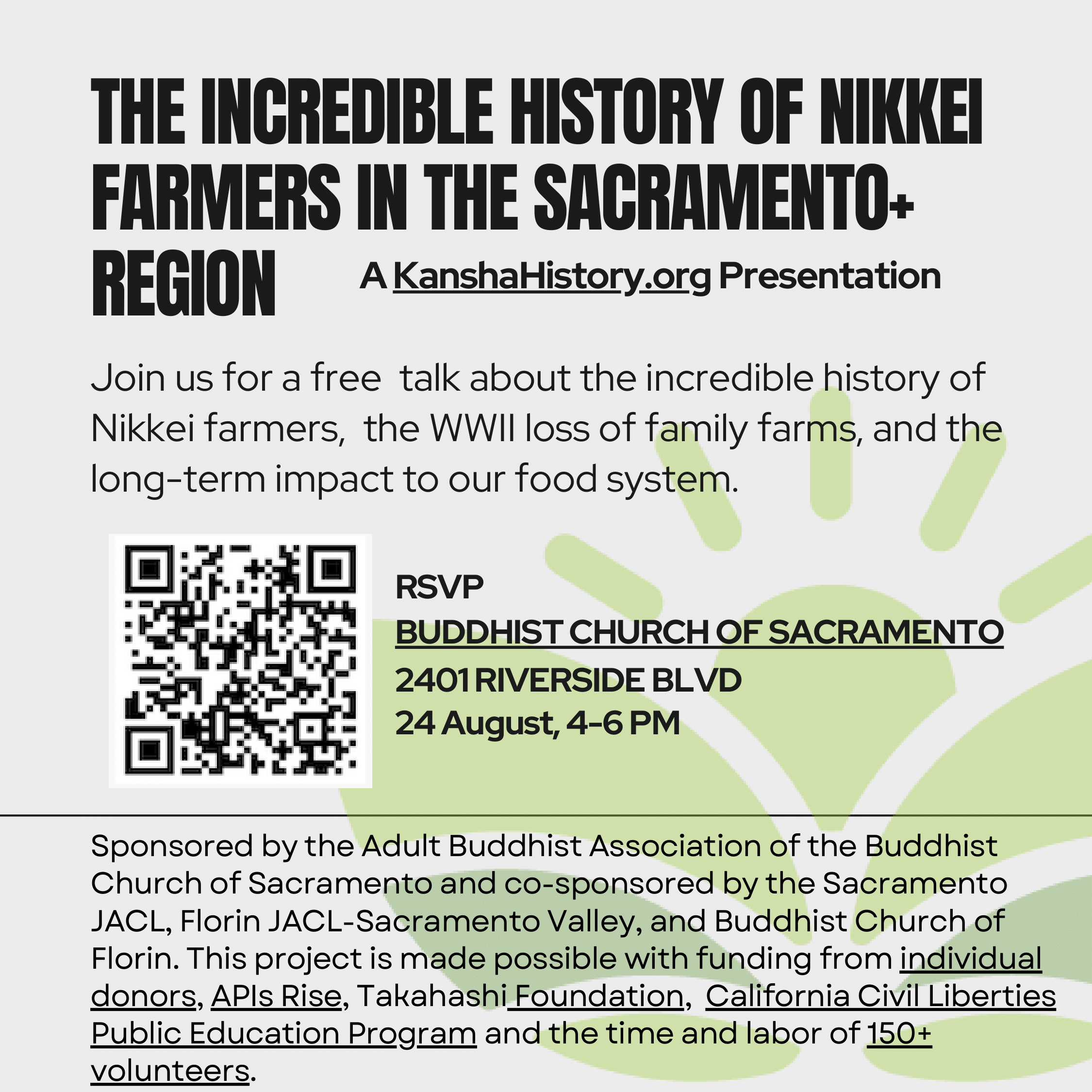 | | August 24: The Incredible History of Nikkei Farmers in the Sacramento+ Region Hosted by KanshaHistory.org |