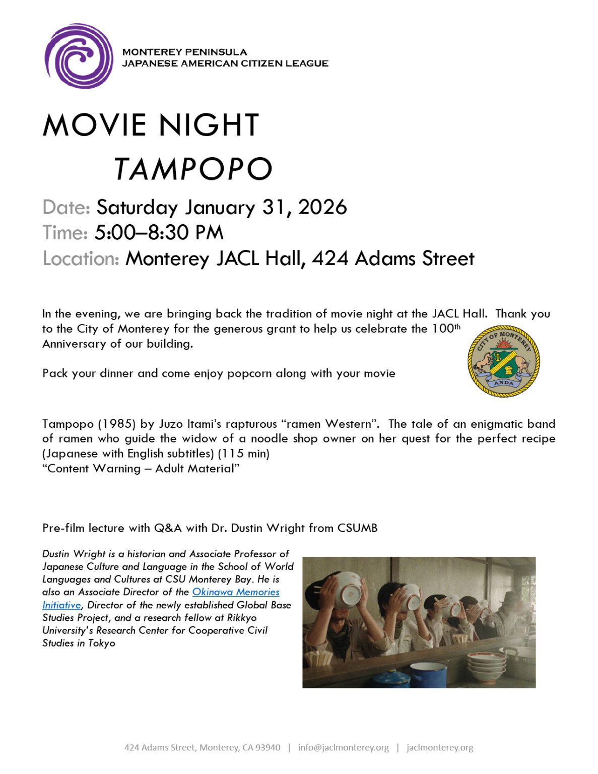January 31: Monterey JACL Movie Night - Tampopo |