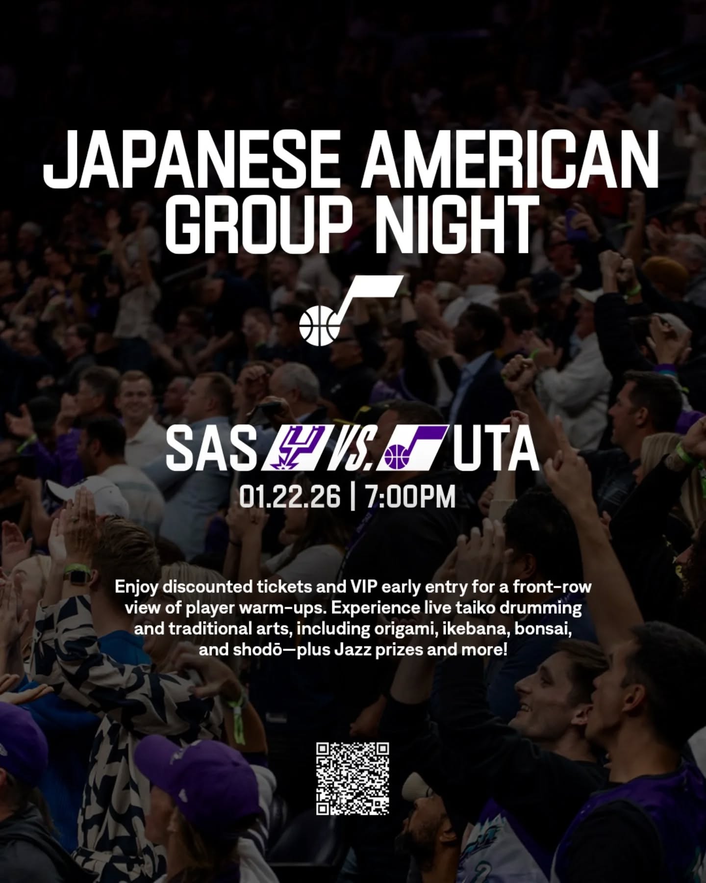 |  | Join the JA community for the first ever Utah Jazz Japanese Heritage Night! There will be VIP early entrance, a tribute to Watt Misaka, taiko performance during half-time, and much more! |