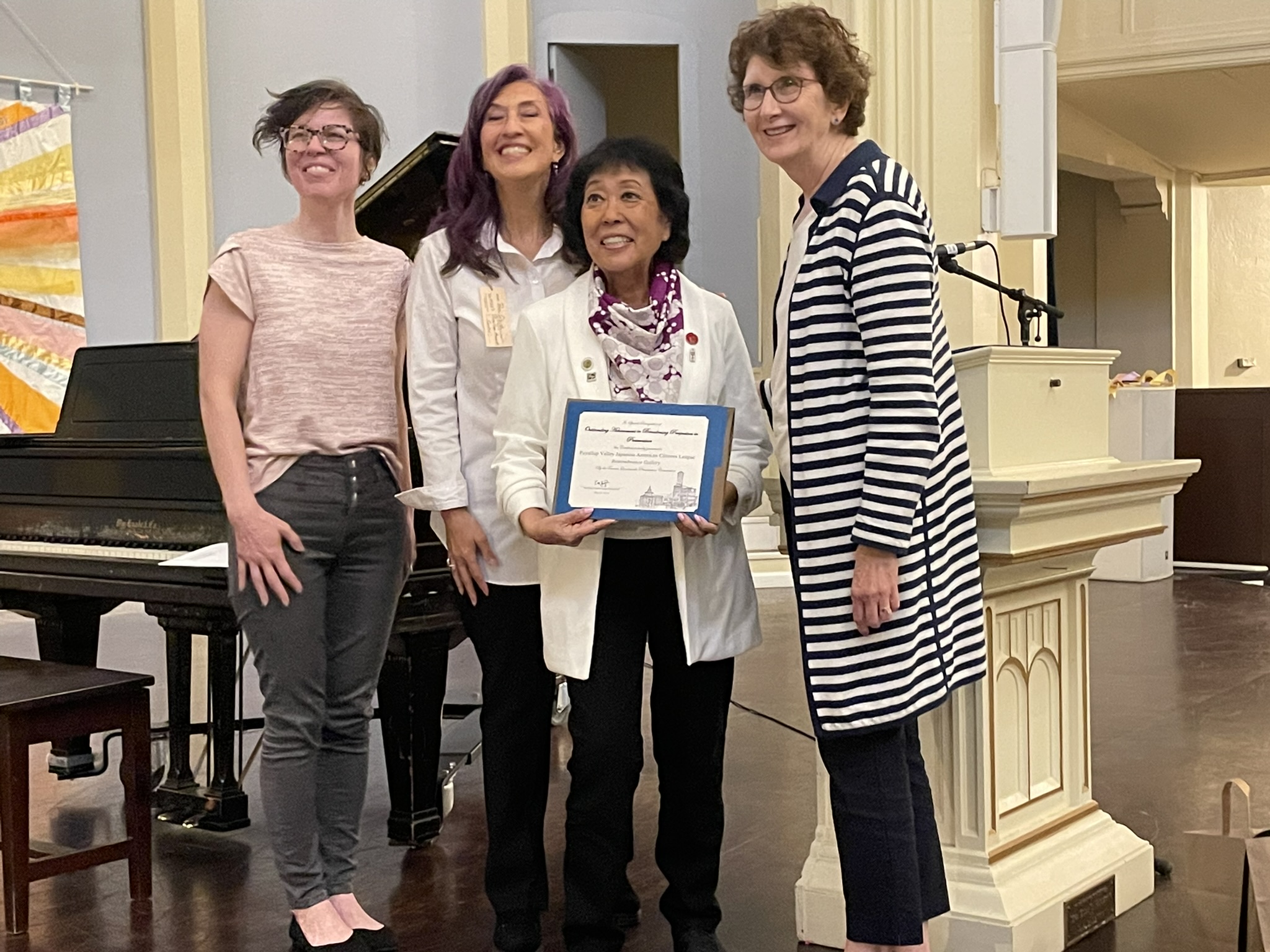 |  | On Thursday, May 22, 2025, the Puyallup Valley Chapter was awarded the City of Tacoma, WA, Outstanding Achievement in Broadening Perspectives in Preservation, for its Remembrance Gallery at the Washington State Fairgrounds. This recognition was given by the Tacoma Landmarks Preservation Commission. Before WWII, the site was known as the Puyallup Fairgrounds, but in 1942, it became the largest temporary American concentration camp in the State of Washington. Opening in September of 2024, over 17,000 guests have visited the Gallery in just 32 fair days. We will reopen on August 30, 2025, the start of this Fall Fair season. We thank the City of Tacoma for its acknowledgement of this tragic chapter in American history. Pictured is Jay Baersten, Landmarks Historic Preservation Commission Sharon Sobie Seymour, Puyallup Valley member and Gallery manager Eileen Yamada Lamphere, Puyallup Valley President Liz Dunbar, Puyallup Valley Secretary and Gallery Fundraising Lead |