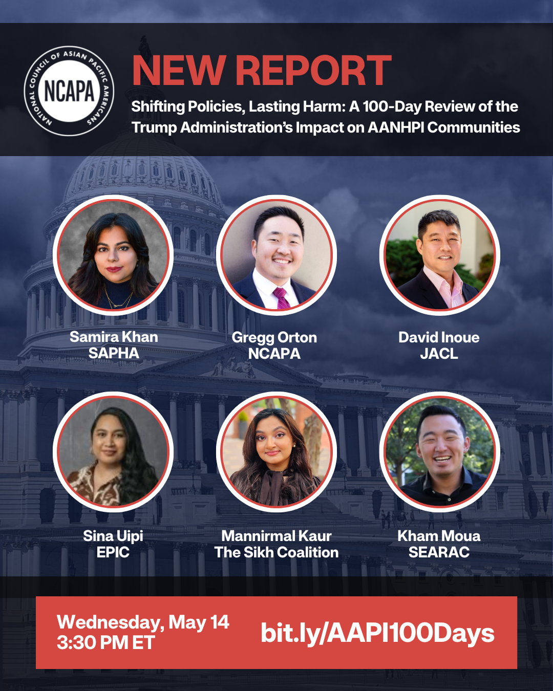 |  | This AANHPI Heritage Month, we are pleased to announce the launch of the National Council of Asian Pacific Americans' new report, Shifting Policies, Lasting Impacts: A 100-Day Review of the Trump Administration’s Impact on AANHPI Communities. We invite you to join us for a briefing this coming Wednesday to learn more: Date: Wednesday, May 14 Time: 3:30 PM ET Location: Zoom (Register HERE) During this virtual event, NCAPA coalition members will share their insights on how early policy shifts in the Trump Administration have had lasting effects on Asian American, Native Hawaiian, and Pacific Islander communities. Together, we will explore the importance of documenting these changes and understanding their broader implications. This conversation is a crucial opportunity to reflect, learn, and strengthen our collective response moving forward. |