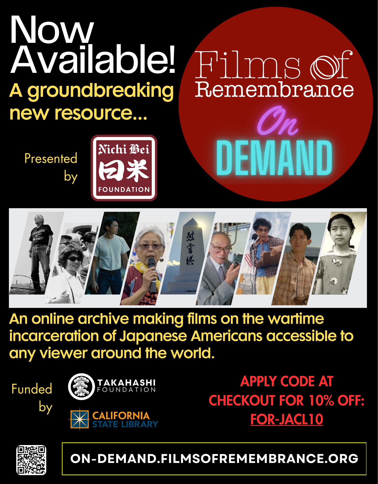 |  | Illuminating Japanese American Incarceration through powerful storytelling - Nichi Bei Foundation Presents Films of Remembrance On Demand. A groundbreaking digital platform that brings untold stories of the Japanese American incarceration experience directly to your screen. Our carefully curated collection of award-winning documentaries and films ensures these crucial narratives continue to educate, move, and inspire audiences worldwide. Discover films that transform memory into action. The Nichi Bei Foundation’s collection on Japanese American incarceration demonstrates that remembrance is resistance — challenging historical amnesia and erasure. |