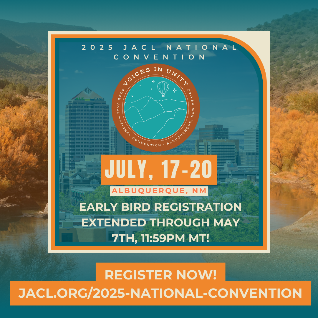 | | | 2025 JACL National Convention 1 Day Left! JACL Members' Only Registration! |