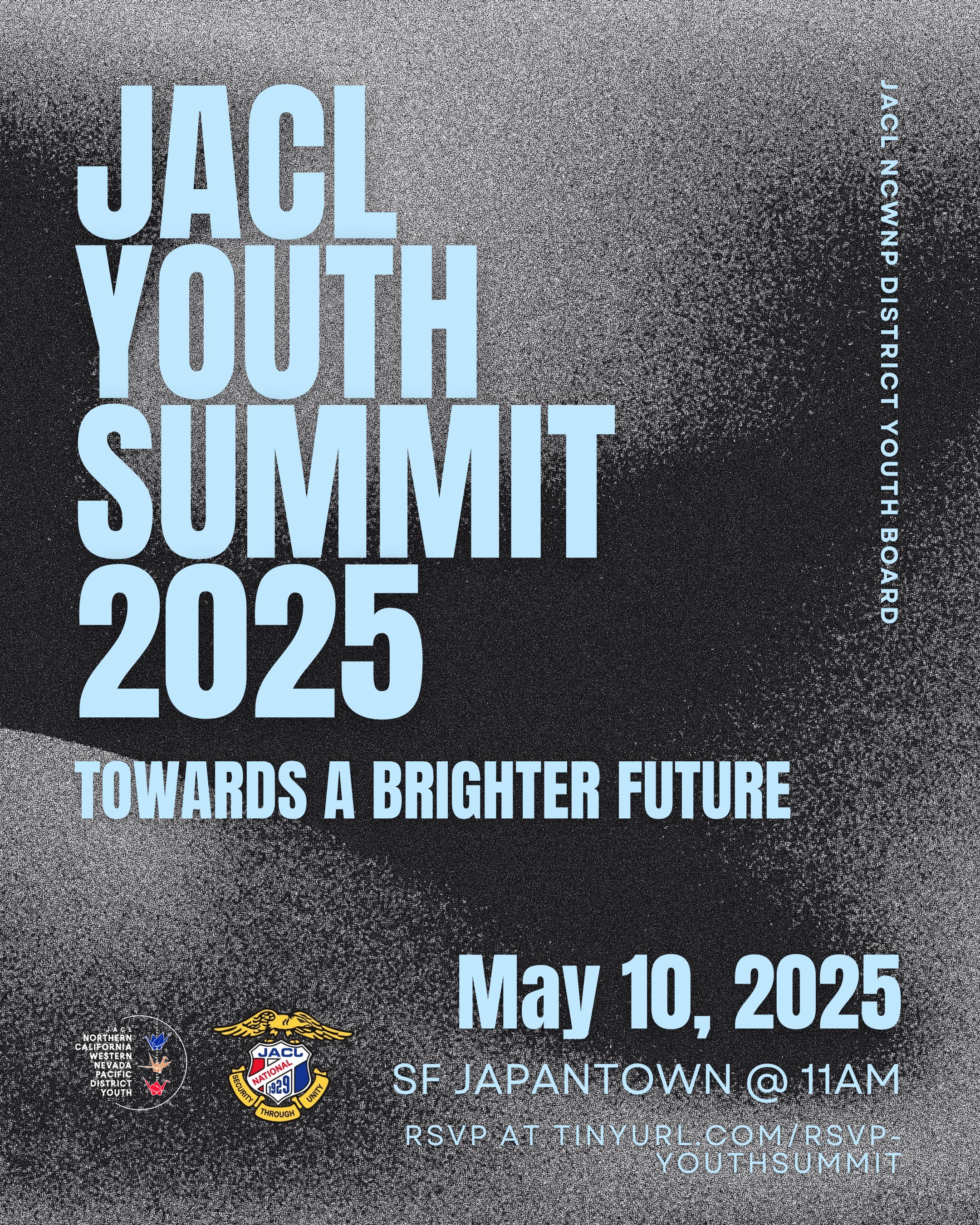 |  | The JACL NCWNP District Youth Board Summit is an opportunity for Japanese American youth (high school and older) to connect and learn more about the JACL and its advocacy efforts. This event will include games, a discussion session, a tour of SF Japantown, and free lunch :) RSVP here and feel free to contact us at ncwnpyouthboard@jacl.org |