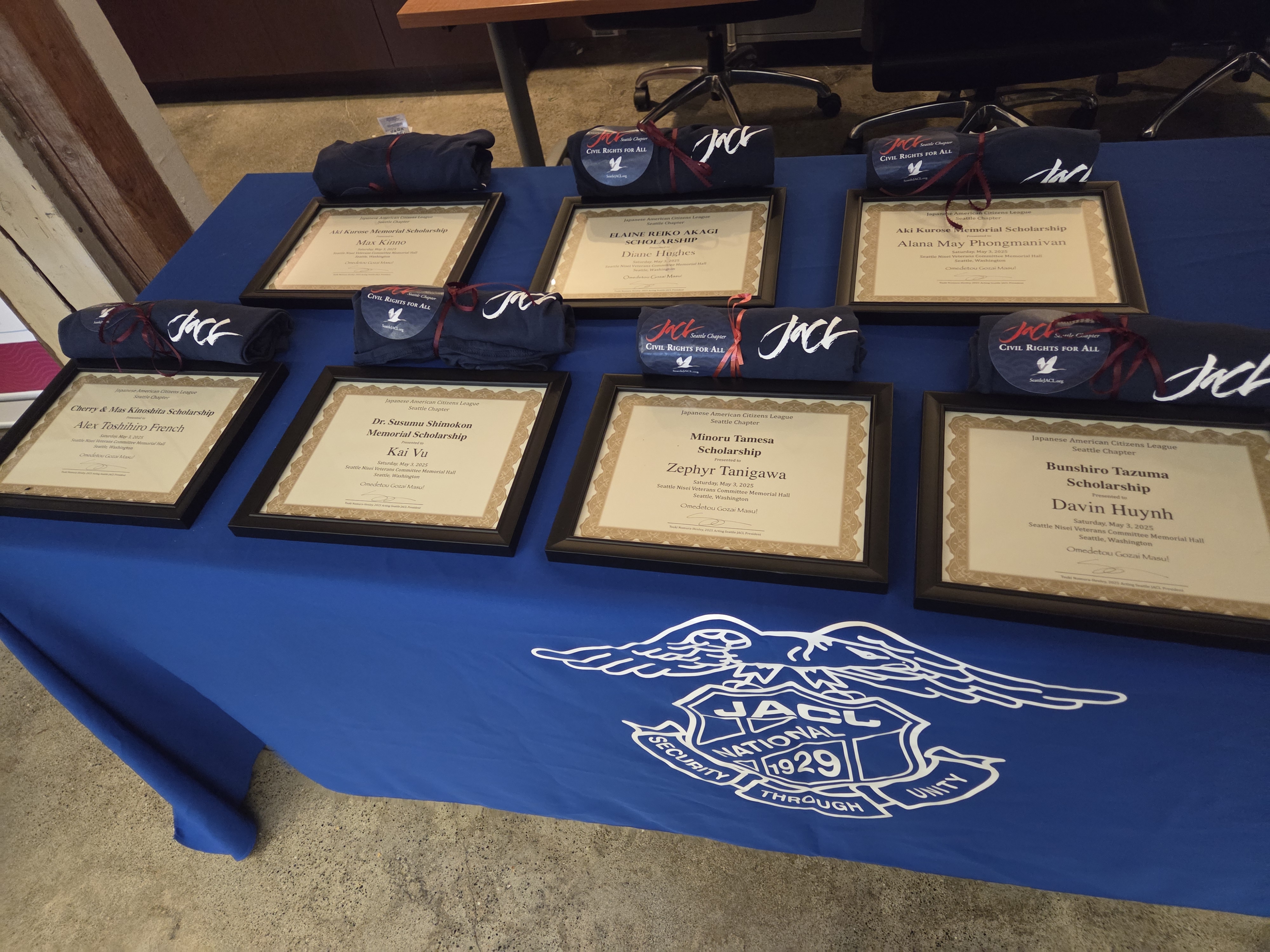 |  | Saturday, May 3rd, Seattle JACL held its annual Scholarship and Past Presidents Luncheon. The luncheon honors our past and future. We recognize our past Presidents and also those for whom our scholarships were endowed, We celebrate our current awardees who will lead us into the future. Remembrance and Hope! Our luncheon is held at the NVC Clubhouse and includes a short tour of this legacy-filled facility. Thank you, Chris Sketchley, for once again offering your services as tour guide. Kioko Soneda served as emcee. Kyle Kinoshita gave the Chapter greetings and acknowledgement of the Past President who was present. Kyle also acknowledged last year's generous bequest by the Iseri family, which will sustain our scholarship program for the coming years. This year, Seattle JACL presented seven scholarships totaling $28,000. Our awardees were: Aki Kurose Scholarship - Max Kinno Aki Kurose Scholarship - Alana May Phongmanivan Bunshiro Tazuma Scholarship - Davin Huynh Minoru Tamesa Scholarship - Zephyr Tanigawa Cherry and Mas Kinoshita Scholarship - Alex Toshihiro French Dr. Susumu Shimokon Scholarship - Kai Vu Elaine Reiko Akagi Scholarship - Diane Hughes Special thanks to this year's scholarship committee: Mika Kurose Rothman (Chair), Patsy Burgess, BiHoa Caldwell, Karen Cunningham, Katie Cunningham, Rae Hanashiro, Kyle Kinoshita, Paul Kurose, Kara Mealy, Jo Shapiro, Kioko Soneda, and Bill Tashima. |