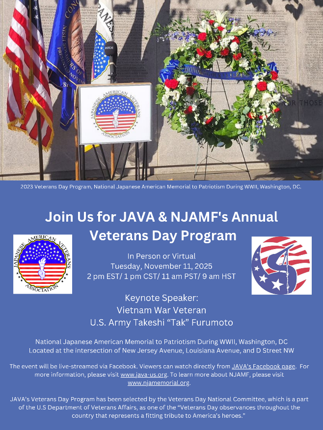 | | Available to Watch Online: JAVA and NJAMF Annual Veterans Day Program in Washington, D.C. |