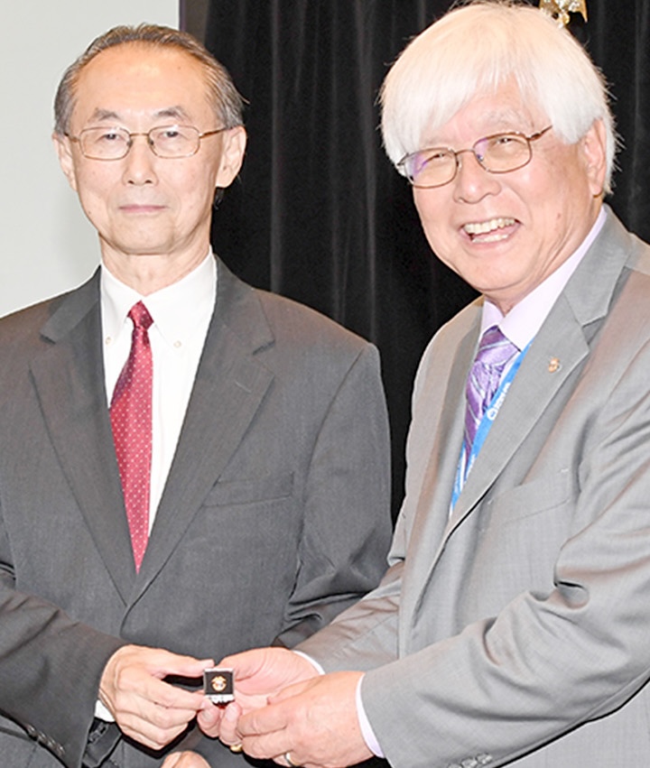 | JACL Saddened by the Deaths of Former JACL National President, David Lin, and his wife, Jean Lin. “It is with deep sadness that we acknowledge the passing of past National President David Lin, a devoted Life Member of the Japanese American Citizens League for more than two decades,” said JACL National President Larry Oda in a statement released to Pacific Citizen. “Throughout his years of service, David exemplified the highest ideals of leadership, commitment and integrity. He served the organization in numerous capacities, including as vice president for Membership, Planning and Development, and as national president. Most recently, he continued his steadfast dedication as chair of the Investment Policy Committee.” “David’s passing is a tremendous loss to the JACL and to the broader community he served with such devotion. We extend our heartfelt condolences to his family and loved ones during this difficult time. His legacy of leadership and service will be remembered with great respect and gratitude.” Photo: David Lin, left, receives JACL’s Sapphire Pin from Larry Oda at the 2024 JACL National Convention in Philadelphia. (Photo: Kris Ikejiri) |