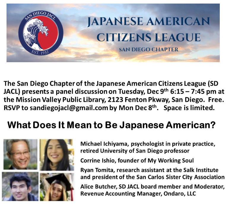 |  | December 9: What does it mean to be Japanese American? Hosted by San Diego JACL |