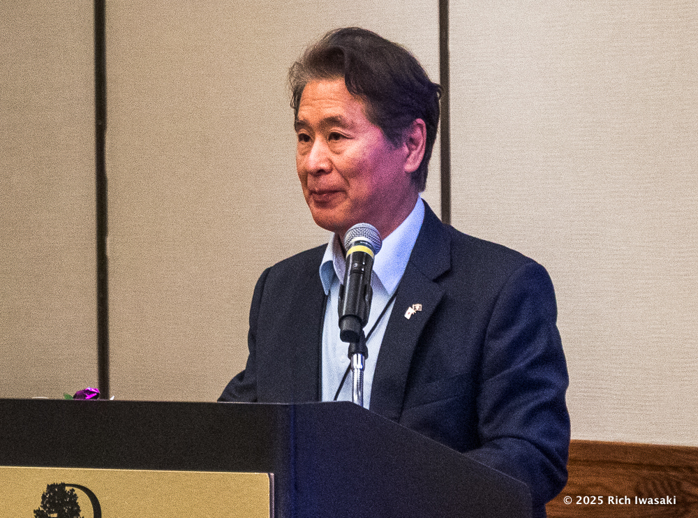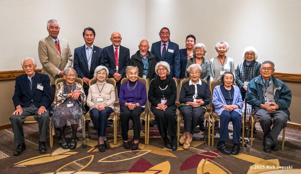 | The Greater Portland Japanese American community came together to recognize 13 honorees at the third annual Centenarian Luncheon held on October 25. And zero honorees arrived in a wheelchair. Said Gresham-Troutdale chapter president and event chair Terry Nishikawa, "I know one who is 102 and she swims almost every day." The annual luncheon honors those who are 95 years old and older, and this year featured Consul General Ken Todoriki as the keynote speaker. The six community organizations that joined together and collaborated are the Gresham-Troutdale and Portland JACL, the Japanese Ancestral Society of Portland, the Japanese American Museum of Oregon, the Veleda Club, and Ikoi no Kai. Photos by Rich Iwasaki Top Left: keynote speaker Consul General Ken Todoriki. Bottom Left: the honorees with Consul General Ken Todoriki. Bottom Right: the six community organizations planning committee with Consul General Ken Todoriki. |