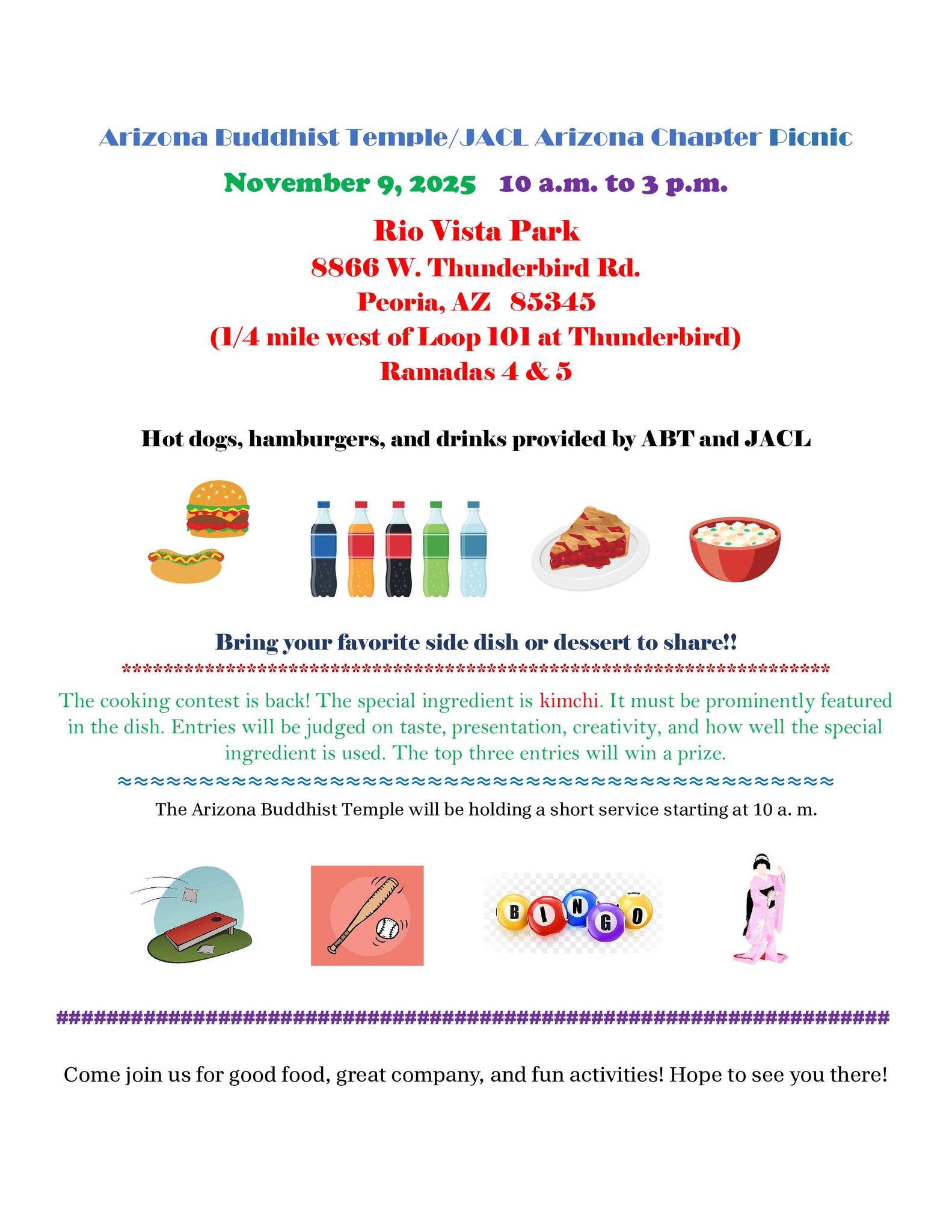 November 9: Arizona Buddhist Temple and JACL Arizona Chapter Picnic |