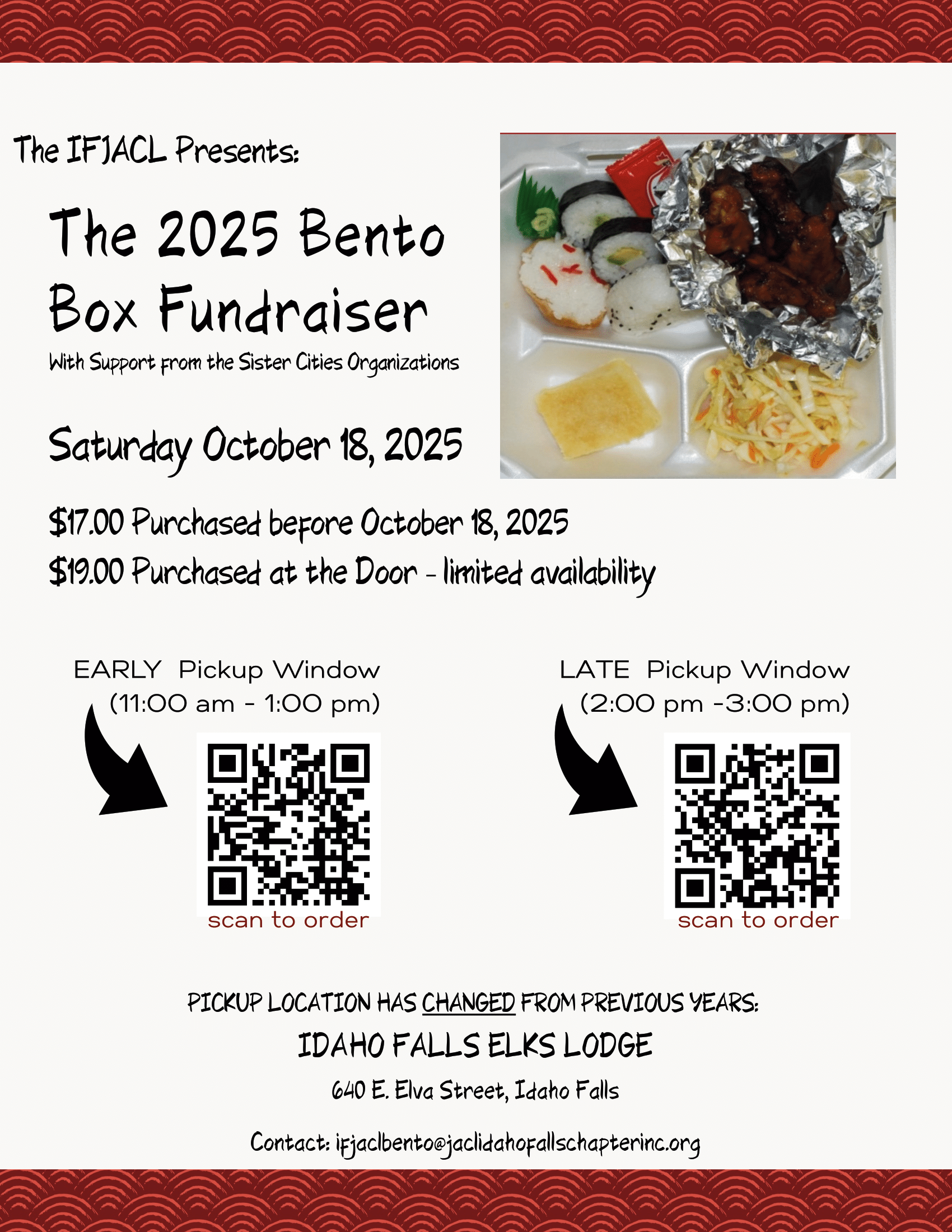 | | October 18: Idaho Falls Chapter Bento Fundraiser |