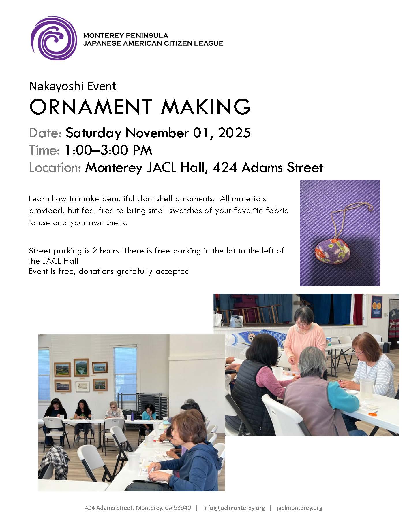| | November 1: Nakayoshi Ornament Making with Monterey Peninsula JACL |