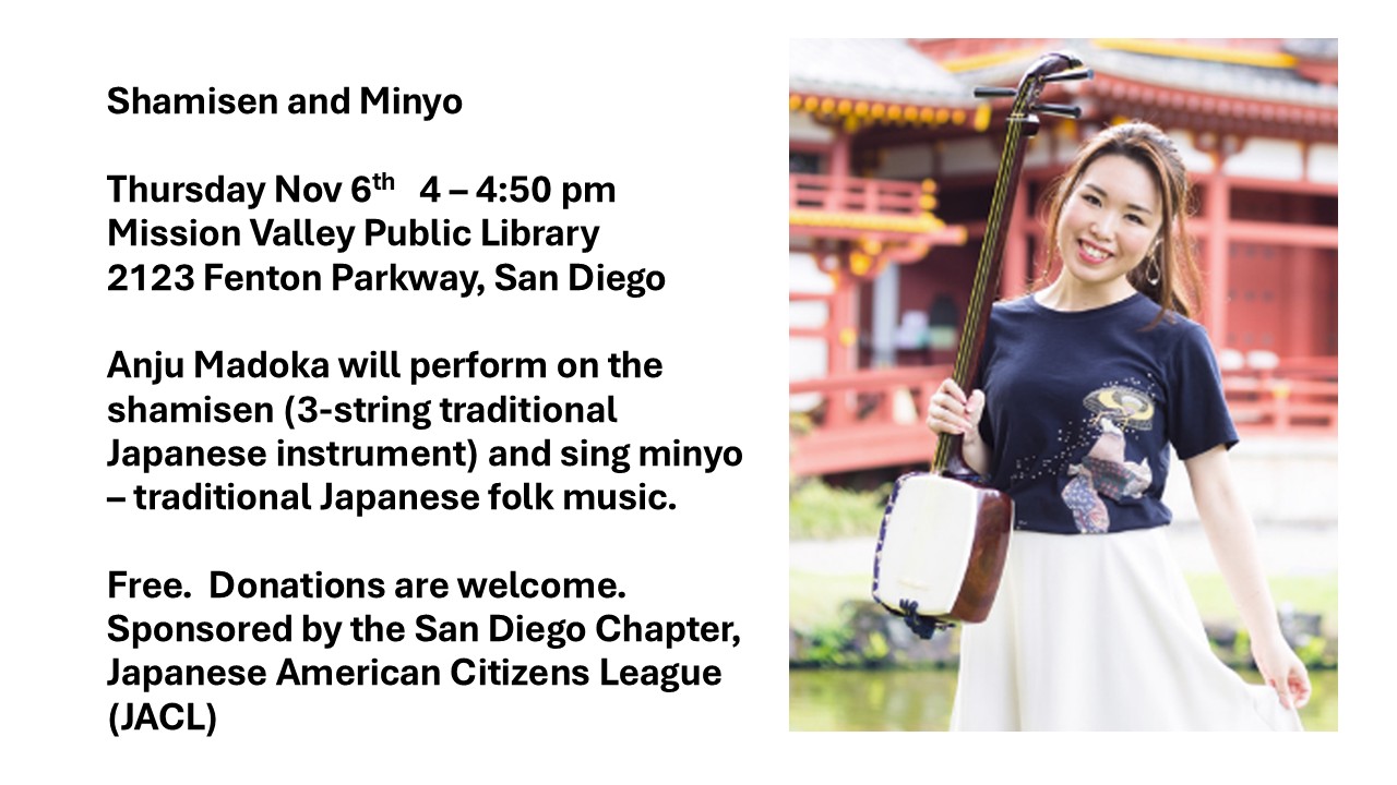 November 6: Shamisen and Minyo Performance with Anju Madoka |