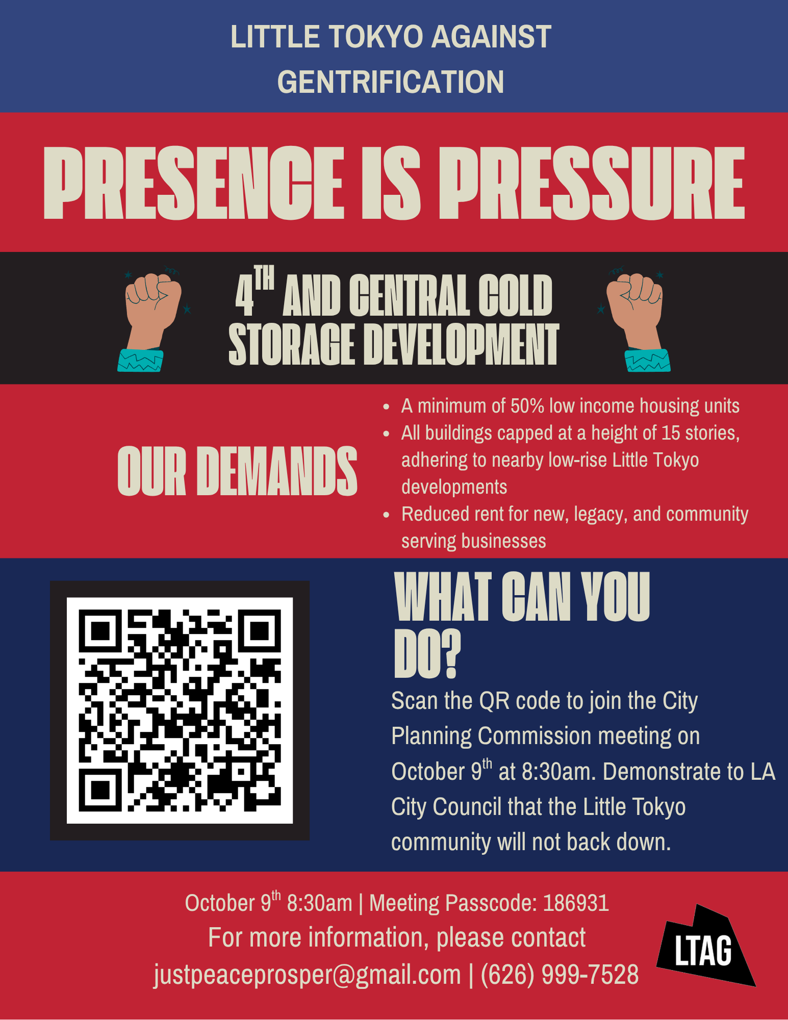 |  | | | October 9: LA City Council Planning Meeting on 4th & Central Cold Storage Development Project |